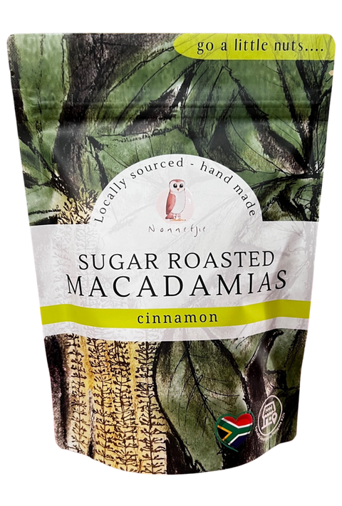 Sugar Roasted Macadamias are a delicious and unique snack that will satisfy your sweet tooth. Made with high-quality macadamia and a perfect blend of sugar and spices, these roasted nuts are a treat you won't want to miss. Whether you're looking for a quick or a tasty addition to your favourite recipes, Sugar Roasted Macadamias are the perfect choice. Available in Vanilla and Cinnamon.